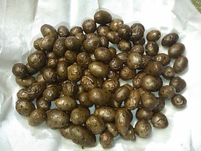 全体にコンニャクの水分が抜けて、絞まった感じになったら一度ザルにあげて、余分な水分を取る。